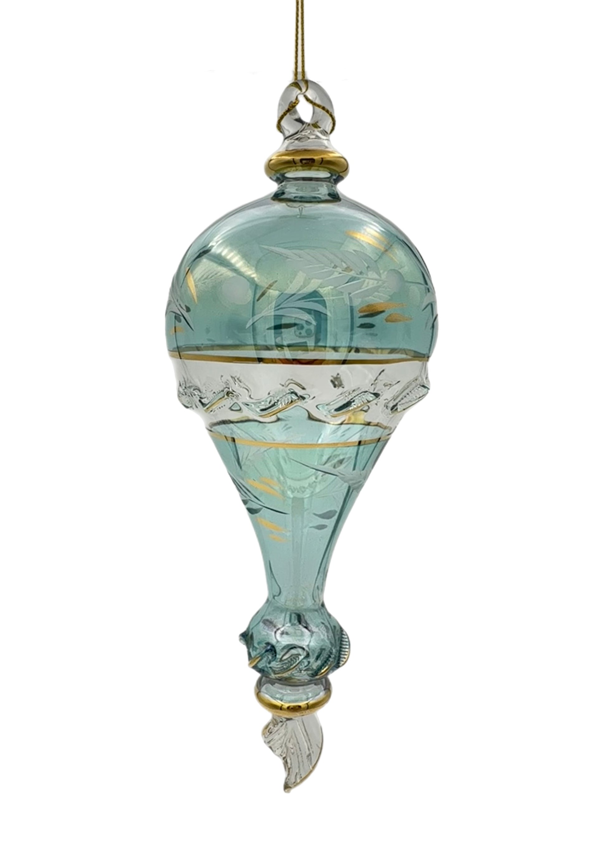 This graceful drop-shaped ornament features delicate floral motifs, capturing the serenity of nature in fine glasswork. A charming and artistic addition to your festive collection.
